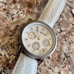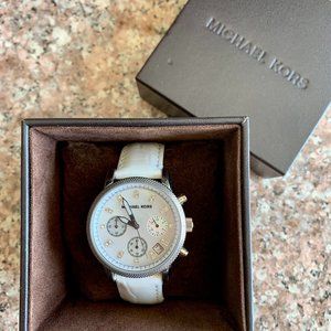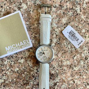 Michael Kors Women's MK5049 White Leather Chronograph Crystal Watch