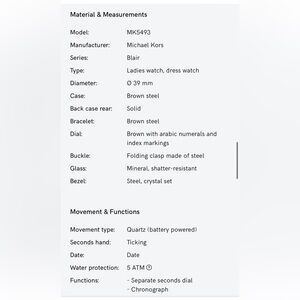 Michael Kors Women's MK5493 Brown Stainless Steel Watch- Needs New Battery