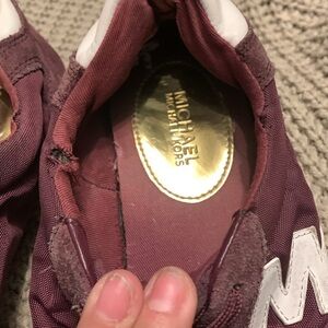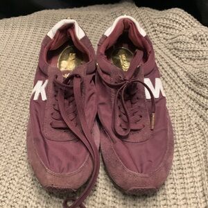 Stylish maroon sneakers with white accents. Comfortable and trendy for everyday wear.