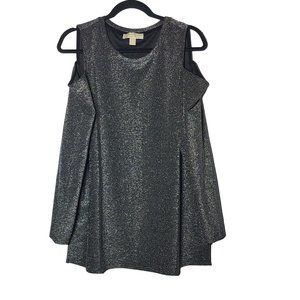 Michael Kors Women's Metallic Cold Shoulder Black Blouse Plus Size 1X Holiday