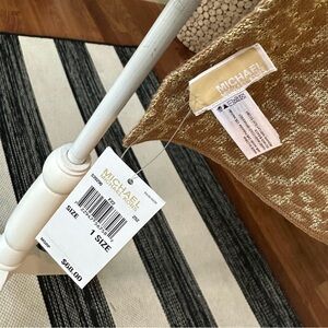 Michael Kors Womens Metallic Gold MK Monogram Print Scarf NWT