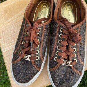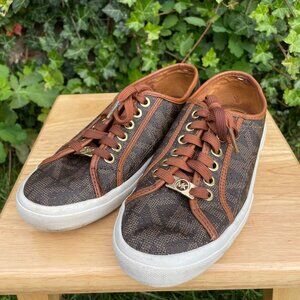 Michael Kors Womens Monogram Canvas Sneakers Brown/Gold Size 6