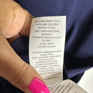 Care: Machine wash cold with like colors on gentle cycle, non-chlorine bleach only, reshape and lay flat to dry, cool iron or dry clean as needed.