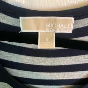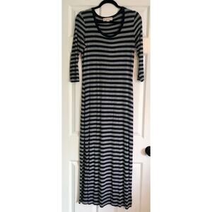 Michael Kors navy and gray striped maxi dress. 3/4 Sleeve, slits on both sides, very soft Rayon/Spandex blend. Very good condition, smoke free home.