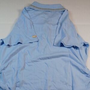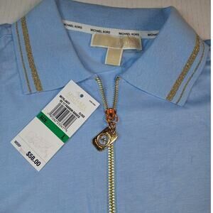 This is a brand new with tags Michael Kors light blue top. It has gold edging around the collar and a zipper. This would be a great addition to your wardrobe!