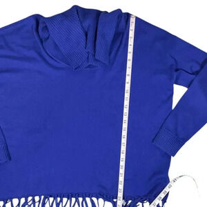 Michael Kors Women's OX Amalfi Blue Cowl Neck Long Sleeve Fringe Sweater Size L