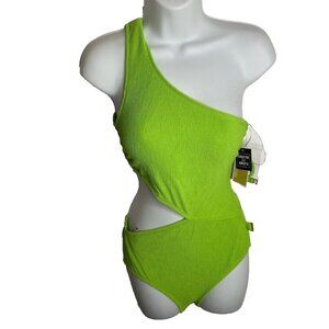 Michael Kors Women's One-Shoulder Side-Cutout Swimsuit Green Apple Size 8
