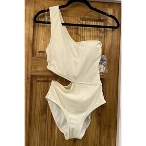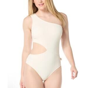 Michael Kors Women's One-Shoulder Side-Cutout Swimsuit Size 12 Bone