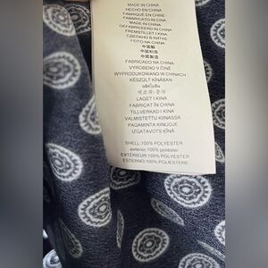Michael Kors Women’s V-Neck Tunic Top, Blue w/Circle Pattern, Silver Treading outlines Open V-Neck, Smocking Detail Above Elbows, 100% Polyester; Size M