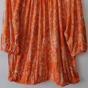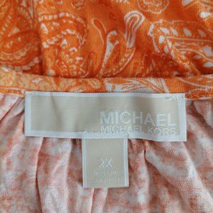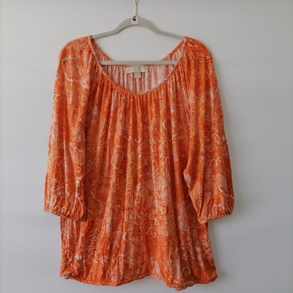 Michael Kors Women's Orange Floral Blouse Size 2X Scoop Neck Elastic Cuff/Hem