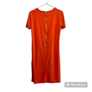 Michael Kors Womens Orange Gold Studded Short Sleeve Mini Dress Size Small