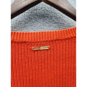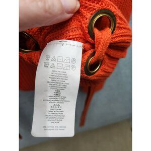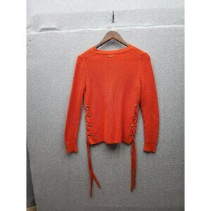 Michael Kors Womens Orange Knit Sweater With Lace-Up Sides Size M 69% Cotton 31%