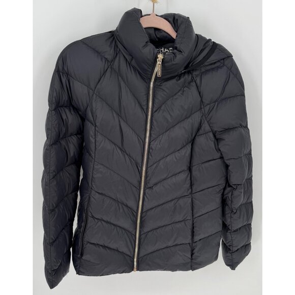 Michael Kors Womens Packable Down Black Puffer Jacket With Hood