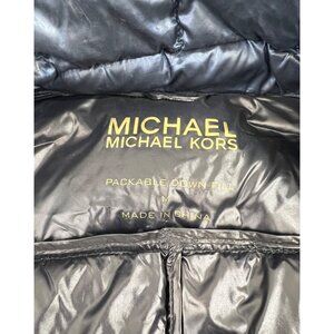 Michael Kors Women's Packable Down Puffer Jacket Navy Blue Gold Accents Sz. M
