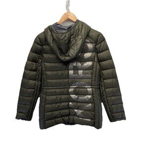 Michael Kors Womens Packable Hooded Down PufferJacket Size M Olive Logo Back Zip
