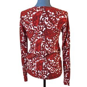 Michael Kors Womens Paisley Print Long Sleeve Sweater XS Red White