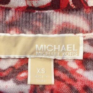 This Michael Kors women's sweater features a striking paisley pattern in red and white, offering a stylish look for professional and casual settings. The long sleeves and soft material ensure comfort while maintaining a polished appearance. The sweater's design provides a fashionable yet functional addition to any wardrobe.