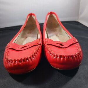 Has sign of wear insoles, light wear in the soles, small stain in the patent leather shown in 3rd picture, no box. please scroll picture for more details. Michael Kors Women's Orange Peach Color Patent Leather size 7.5M. Pet and smoke free home.