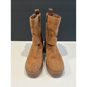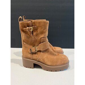 Michael Kors Womens Perry Brown Suede Leather Platform Moto Boots size 8