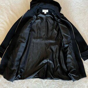Michael Kors Women's Petite size PXL Black Wool Blend Full Zip Hooded Coat