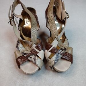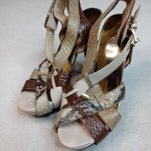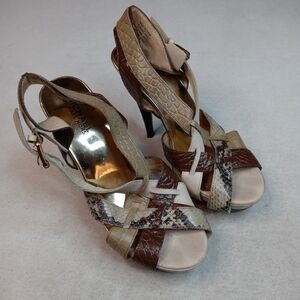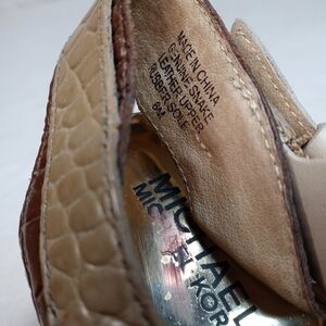 Michael Kors Women's Platform Slingback Shoe Genuine Snakeskin bone Black Sz 8M. Condition is "Pre-owned". 1" platform. 4.5" heels. Gold logo plate. Shipped with USPS Priority Mail. 203.1pem