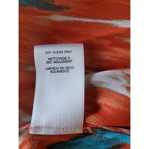 Michael Kors Womens Pleated Crinkle Chiffon Caftan Blouse L Orange & Blue Abstra