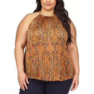 Michael Kors Women's Plus Size Pleated Printed Chain-Neck Top Blouse Brown 3X
