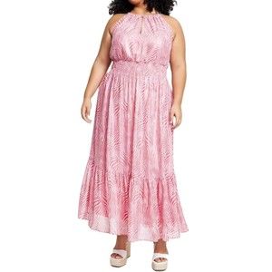 Michael Kors Women's Plus Size Zebra Halter Dress in Pink Polyester, 2X