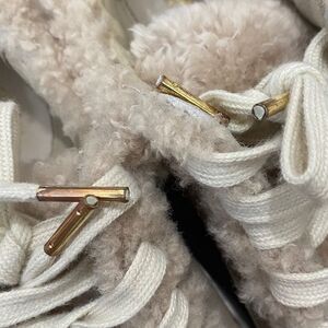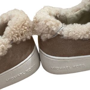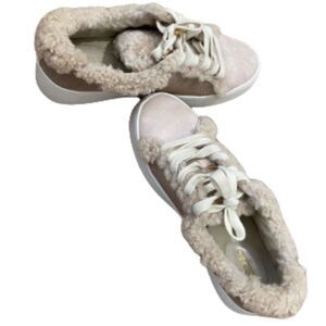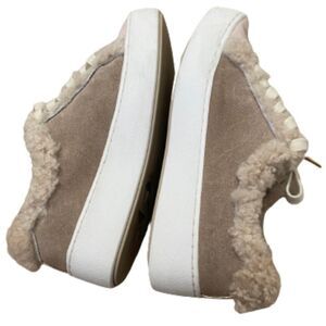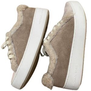 Michael Kors Women’s Poppy Suede Shearling Lace-Up Ivory Tan Sneakers Size 7.5