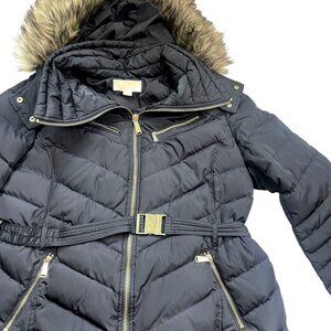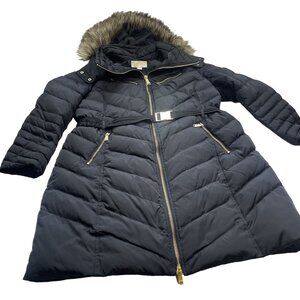 Michael Kors Womens Puffer Down Coat With Faux Fur Hood Black size XXL 3/4