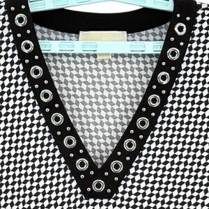 Michael Kors Women's Pullover Stretch Geometric Grommet V-Neck Long Sleeve Top Size XL