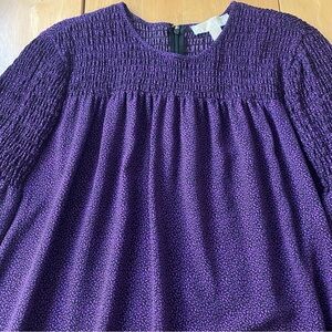 Michael Kors Women’s Purple Smocked Neck blouse Sz Large