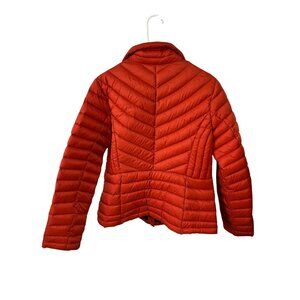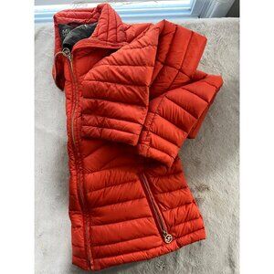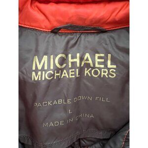 Michael Kors Womens Red Packable Down Fill Jacket Size L Gold MK Zipper Lightwei