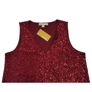 Michael Kors Womens Red Sequin Sleeveless V-Neck Top Size L, Blend, NWT.
