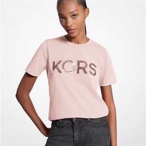 Michael Kors Women's Red Short Sleeve Round Neck Knit Crop Tee T-shirt Top Size M