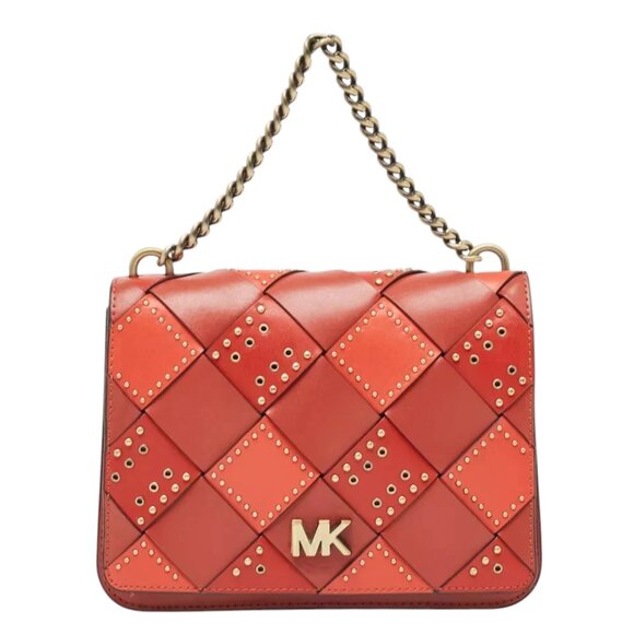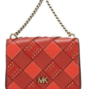 Michael Kors Women's Red Woven Leather Studded Mott Top Handle Bag