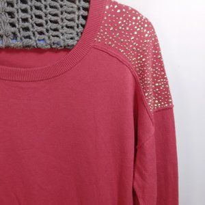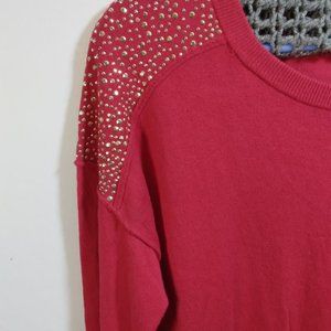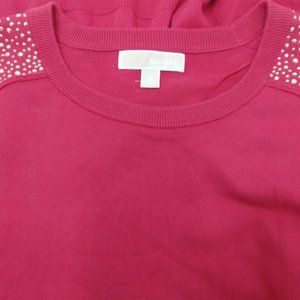 Michael Kors Women's Red w/Gold Gems on Shoulders Sweater Top Size M