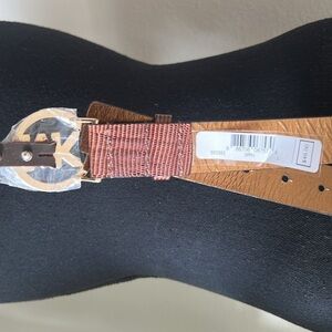 Michael Kors Women’s Brown Reptile Embossed Vegan Belt Signature Brushed Gold Tone Logo.