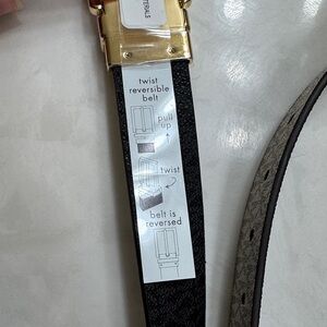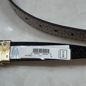 Michael Kors Women’s Reversible Beige and Gold/ Black and Gray Monogram Belt