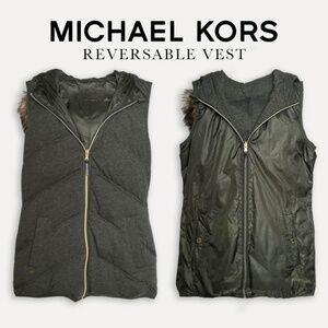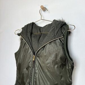 Michael Kors Womens Reversible Vest Olive Green Down Jacket Faux