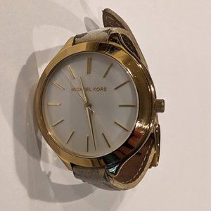 Michael Kors Women's Runway Mk2273 White Leather Analog Quartz