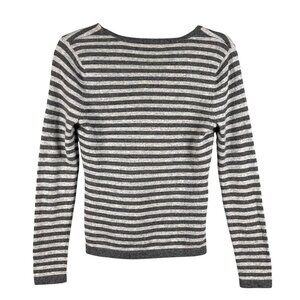Michael Kors Womens S Y2K Gray Striped V-Neck 100% Cashmere Sweater Long Sleeve