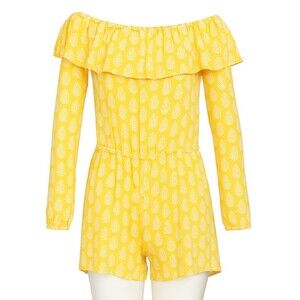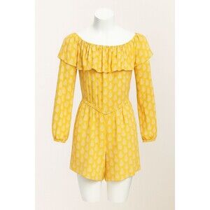 Michael Kors Women’s S Yellow Boho Ruffle Off Shoulder Romper Long Sleeve Casual