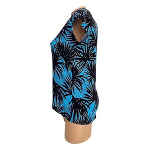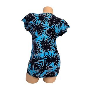 Michael Kors Women's SMALL Black & Turquoise Palm T-shirt Short Sleeves Top