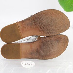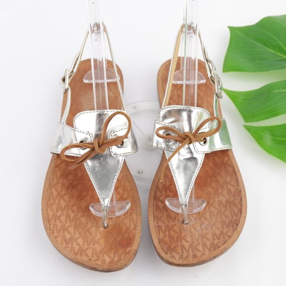 Michael Kors Womens Sandals Size 9 Silver Metallic Leather Thong Slingback Flats