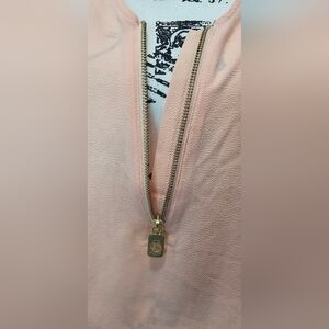 Michael Kors Women’s Sheer Solid Peach Short Sleeve Half Zip Blouse Size L