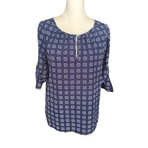 Gently Used in Excellent condition Michael Kors Short sleeve to 3/4 sleeve top. Blue and white in size small.