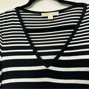 Michael Kors Women's Short Sleeve Black/White Striped V-Neck Maxi Dress Sz S GUC