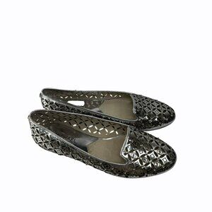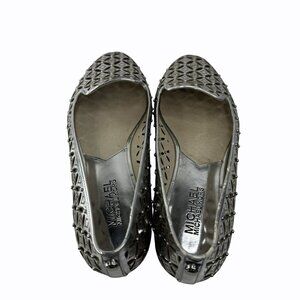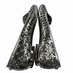 Michael Kors Womens Silver Metallic Gabri Laser-Cut Ballet Flats Size 6.5 EUC