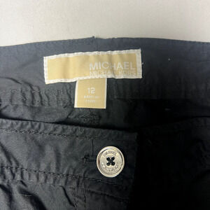 * Title: Michael Kors Womens Size 12 Black Cargo Chino 12" Inseam Silver Zip Pockets Mom